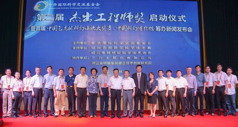 为落实习近平总书记5月30日在全国科技创新大会上的讲话精神,中华国际科学交流基金会继2014年首届“杰出工程师”全国评选、表彰以后,再次启动第二届“杰出工程师奖”全国评选表彰活动。6月8日,“杰出工程师奖”全国评选、表彰启动仪式暨“全国飞虎杯科幻小说大奖赛”、“全国科幻博物馆”筹办新闻发布会在绍兴柯桥举行。活动由中华国际科学交流基金会主办,浙江绍兴市柯桥区科技局、柯桥区科学技术协会支持承办,三力士股份有限公司、浙江凤凰军民融合技术创新研究院协办。中华国际科学交流基金会名誉理事长白克明、理事长陈曦、副理事长兼秘书长李克诚、著名经济学家温元凯及柯桥区人民政府区长陆建尧、副区长周树森,还有首届“杰出工程师奖”获奖代表14人参加了启动仪式和新闻发布会。启动仪式上中华国际科学交流基金会李克诚介绍了第二届“杰出工程师奖”奖励对象推荐的原则、渠道、标准及评审的办法、要求。首届杰出工程师奖获奖代表、中国电子科学研究院首席科学家陆军围绕着习近平总书记在全国科技创新大会上的讲话,提出并诠释了“责任、创新、协同”的中国工程师精神,向全国工程师发出了践行中国工程师精神的倡议。启动仪式上还举行了中华国际科学交流基金会“科技公益形象大使”的聘请仪式,著名演员吴秀波到场接受聘请,担任“科技公益形象大使”,并表示努力履行责任,支持“科技公益”、宣传工程师,宣传中国工程师精神。此外,浙江省云尚购电子商务有限公司、新疆帕米尔山泉有限公司、三力士股份有限公司向中华国际科学交流基金会科技公益进行了捐赠。