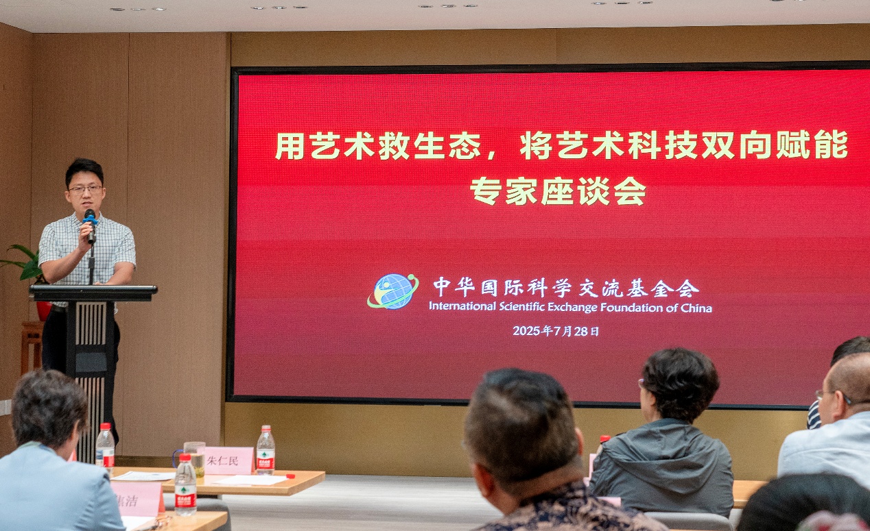 7月28日,为庆祝习近平总书记提出“绿水青山就是金山银山”理念20周年,并祝贺“达芬奇-朱仁民双人艺术博物馆”作品展举办成功,中华国际科学交流基金会(简称“科基会”)在北京炎黄艺术馆成功举办 “用艺术拯救生态,将艺术科技双向赋能”专家座谈会。活动出席有中华国际科学交流基金会理事长陈曦、中国生态文明研究与促进会首席专家胡勘平、香港特别行政区文学艺术界联合会驻会副主席王无际、中华国际科学交流基金会“杰出工程师奖”获得者焦洁女士、国家开放大学书法学院原院长蔡民基等十余位来自生态、艺术、科技等领域专家学者齐聚一堂,共同探讨展览中所展示的通过艺术与科技双向赋能融合助力,修复生态的创造性理论和实践。座谈会由中华国际科学交流基金会科学与艺术委员会驻会副主席吴鹏凯主持。