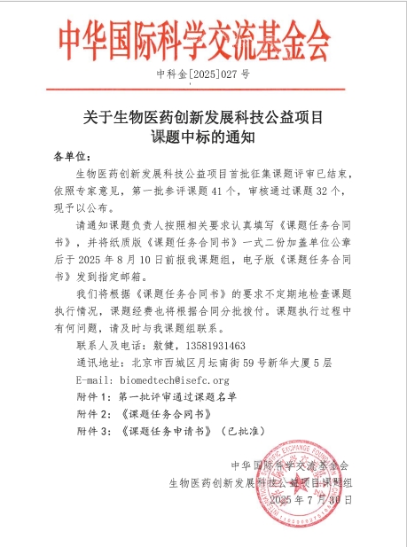 生物医药创新发展科技公益项目第一批评审通过课题名单
