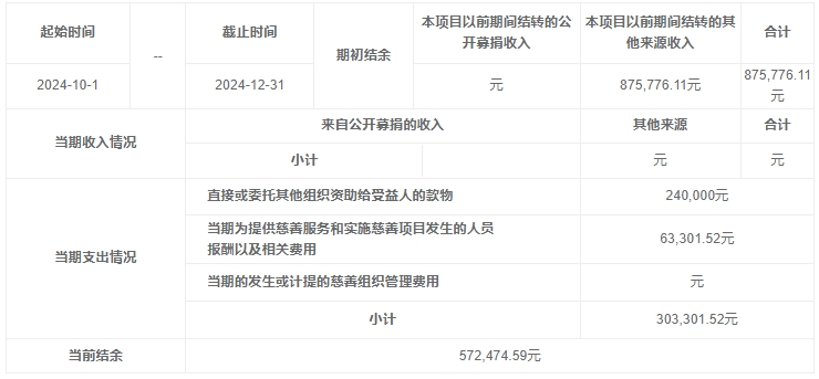 2024年第四季度,本季度该专项基金未开展相关活动。