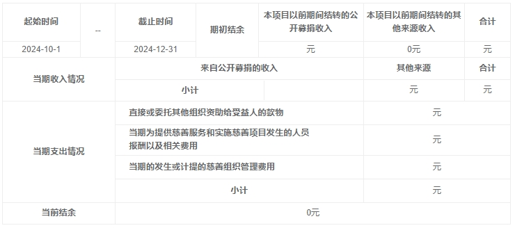 2024年四季度,项目未开展相关活动,支出收入情况公示如下: