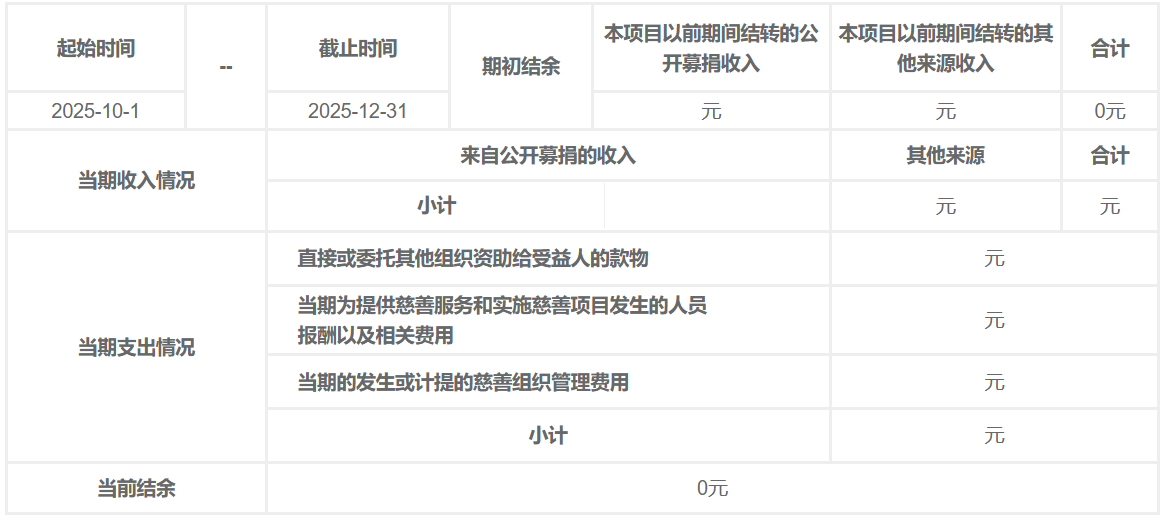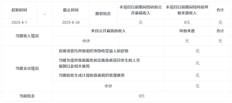 2025年一季度,项目未开展相关活动,支出收入情况公示如下: