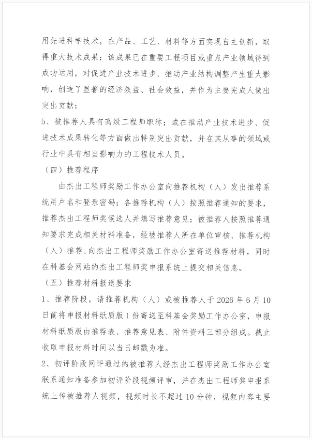 中华国际科学交流基金会关于启动2026年第七届杰出工程师奖推荐工作的通知 Attachments: 附件一中华国际科学交流基金会杰出工程师奖奖励办法.doc[ ]30 kB 附件二2026年杰出工程师奖推荐工作的有关说明.doc[ ]26 kB 下一页